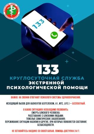 Бесплатный телефонный звонок по номеру 133 соединит абонента с Центром экстренной психологической помощи, созданном на базе РНПЦ психического здоровья. Горячая линия предназначена для тех, кто оказался в трудной жизненной ситуации и нуждается в профессиональной поддержке. Позвонив по номеру 133, человек сможет анонимно поговорить с психологом.