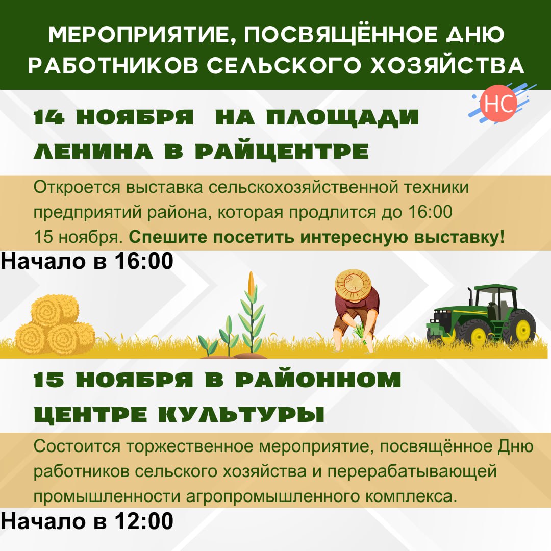 15 ноября в районном Центре культуры состоится торжественное мероприятие, посвящённое Дню работников сельского хозяйства и перерабатывающей промышленности агропромышленного комплекса.