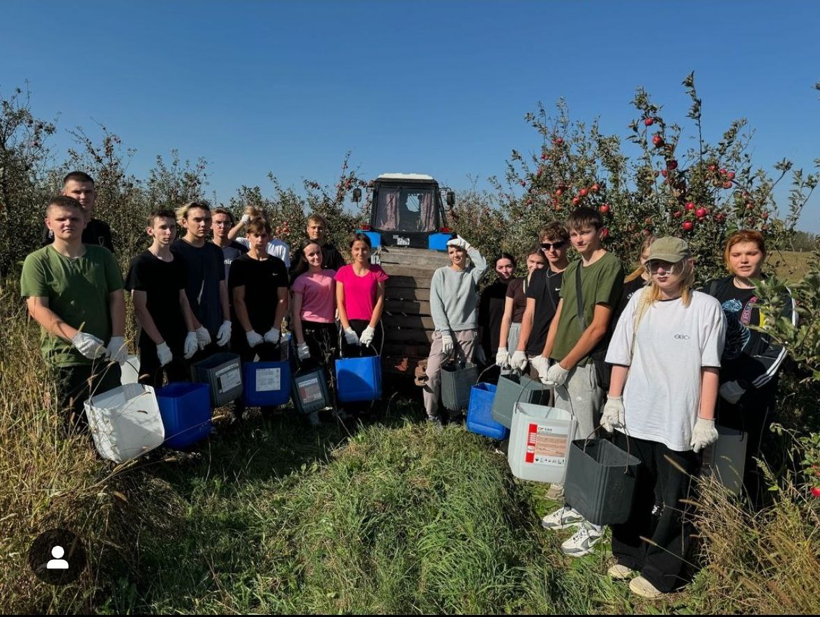 The agricultural team consisting of students of the Stolin State Agrarian and Economic College finished their work harvesting apples at the Berezhnoye State Agricultural Enterprise.